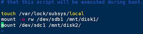 1 [root@qfedu.com ~]# vim /etc/rc.d/rc.local #将挂载命令直接写到文件中